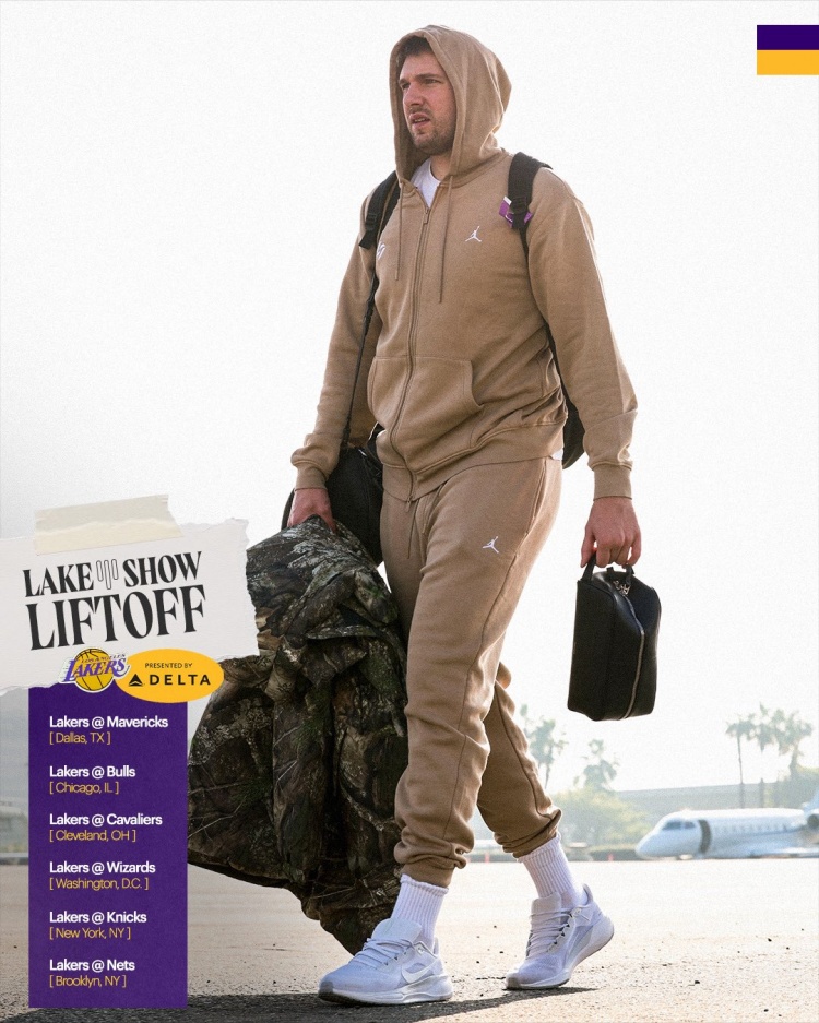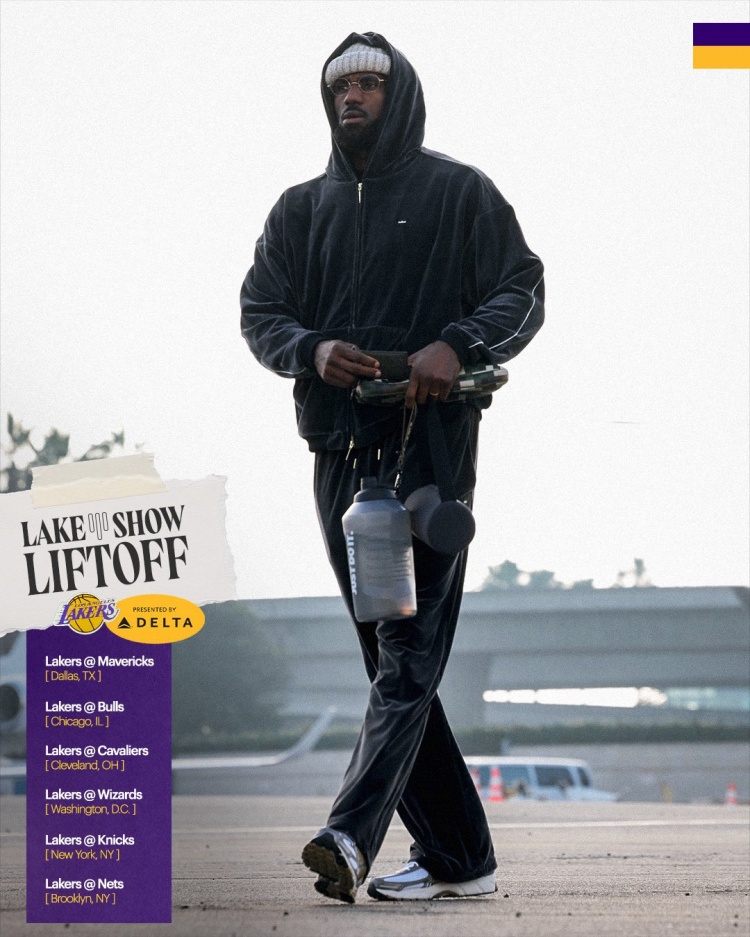 “6个地点。客场之旅时间。”湖人官推写道。